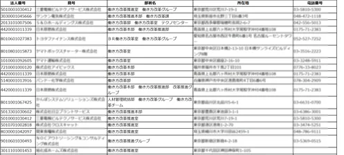 - 「働き方改革」「CSR」等の特定キーワードを含む部署名リストが欲しい