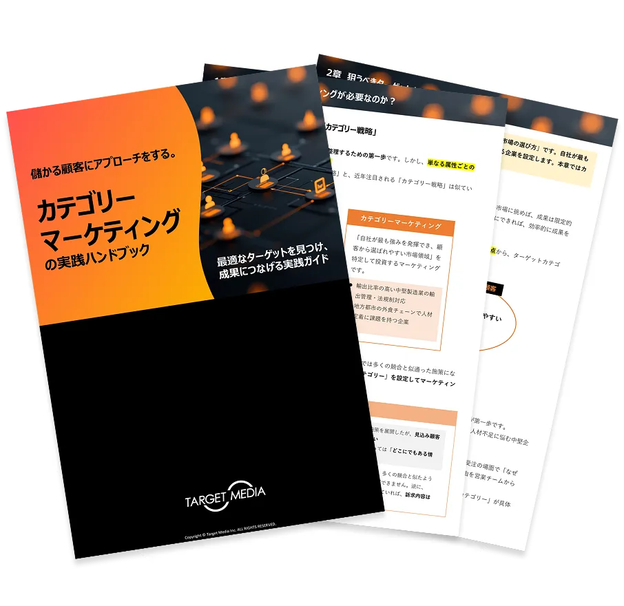 セグメントマーケティングとは、顧客を企業規模や業種などの属性で分類してアプローチするマーケティングです。それに対してカテゴリーマーケティングとは、セグメントを土台に「受注しやすく、取引拡大性の高いターゲットを定めてアプローチするマーケティングです。